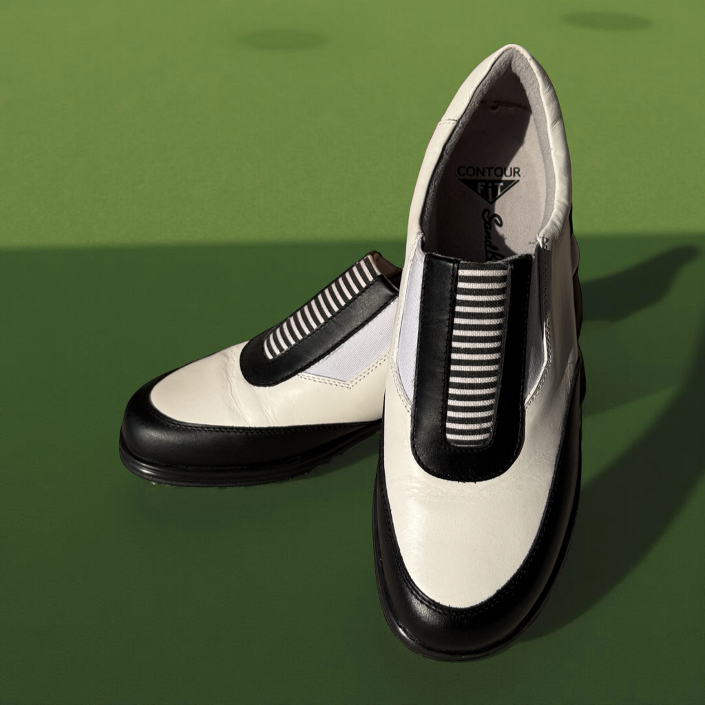Classic style, modern comfort – these Sandbagger golf shoes in bold white and black contrast that looks as sharp on the green as it does in the clubhouse. Lightweight, breathable and perfect for long days on the course, they deliver all-day support with a fashionable twist. This size 6 pair is perfect for the player who keeps it clean, cool and classic.